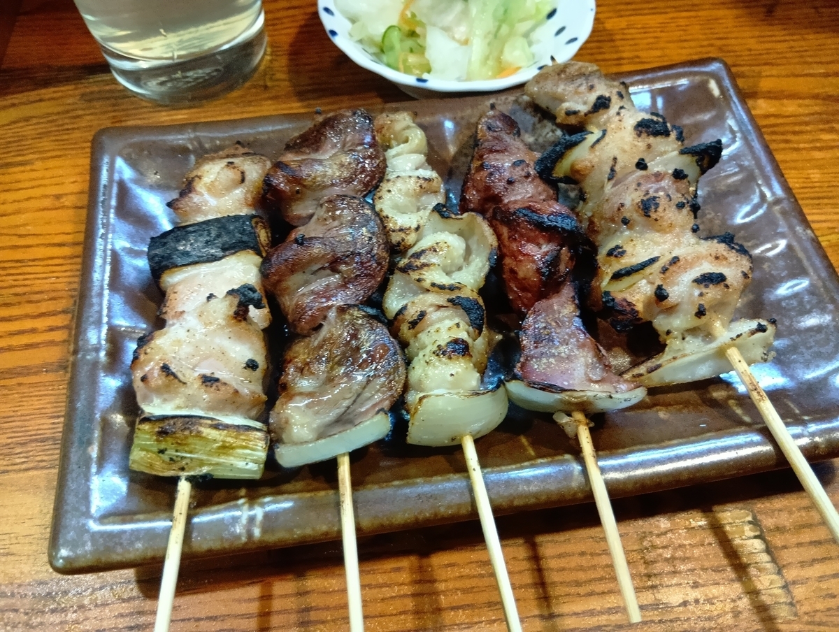 焼き鳥、塩で盛り合わせ